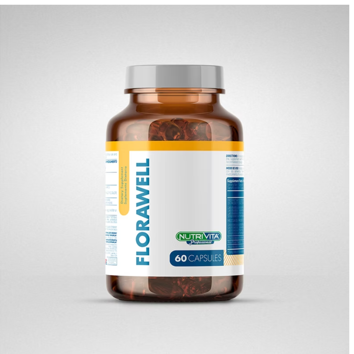 Suplemento dietario: Florawell es una fórmula con 10 cepas de probióticos con 2.5 billones de UFC de cada uno (que actúa contra las bacterias patógenas del intestino y mantiene un equilibrio inmunológico vital) Ayuda para la defensa del organismo, sistema inmunológico, estreñimiento, gases, equilibrar flora intestinal, controlar colesterol, disminuir la inflamación estomacal, pH equilibrado.